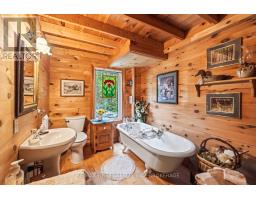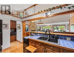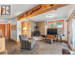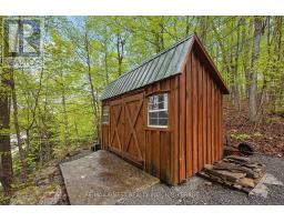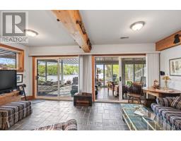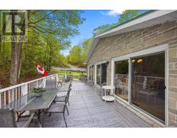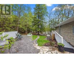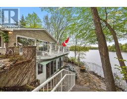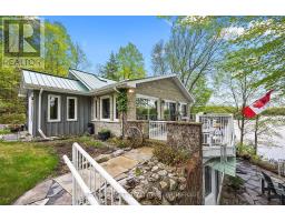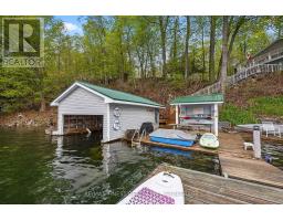 Just a short drive from downtown Kingston and a quick jaunt into Westport, nestled among more than 20 varieties of mature trees, on spring fed Buck Lake and in the Canadian Shield, this prestigious stone, raised bungalow is waiting for you to call home. The main floor boasts floor to ceiling windows and patio doors to the wrap around deck and clear, 180 degree view of Crown land including exclusive direct sight of the famous local landmark, Pulpit Island with the iconic "Devil's Pulpit". The lower level, which is a walk-out, has two additional bedrooms (that could be 3), a 4-piece bathroom, laundry closet, cozy rec room with propane fireplace and like upstairs, floor to ceiling windows and patio doors so that you never lost the view. You walk out into a three season space under the deck, here you'll spend many nights playing cards/games. Just a few steps from the main house is a beautiful 4 season guest house, complete with a single/double bunk bed, toilet, sink and outdoor shower. Take the stone steps down to the crystal clear and deep shoreline, pop open the cabana and host the best dock party around! There is plenty of room on the dock for all sorts of activities and the original solid boat house is ready, waiting to house your watercraft of choice. The period style of the building's living space (2,078 sq ft) is enhanced by artful, expansive and expensive landscaping of local stone and materials; patios, pathways, limestone steps, iron railings, border rock fences, 2 large rough cut board and batten pine sheds, with steel roofs to match the main house! Upgraded Septic system, Brand new Kohler-Generator, and Bunkhouse Cabin. This is a home that needs to be seen and experienced in person! (id:61594)