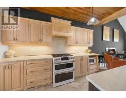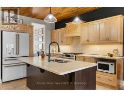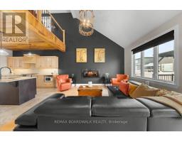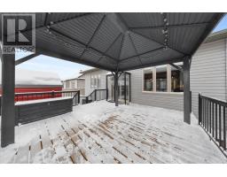 Prestigious bungalow w/loft, stone-faced front exterior, covered veranda w/aluminum railings, high roof peaks w/shake accents, 8-foot high full glass front door, foyer w/tile floors, rounded drywall corners, 2-panel interior doors, 9-foot flat ceilings, high baseboards & window w/foot stool mouldings, open staircase up & down w/rod iron spindles & maple boxed posts, dining room w/cathedral ceiling, bay window, decorative columns & rich maple hardwood flooring, centre-island kitchen w/Quartz countertops, breakfast bar, double recessed sink, upper & lower mouldings, stylish horizontal backsplash, premium flat-white appliances including four-door refrigerator w/ice & water, 6-burner gas range w/dual ovens, accent wood-plank ceiling plus 2-sided walk-in pantry, living room w/dramatic 2-storey ceiling & 16' x 9' gas fireplace w/marble surround, multiple rear windows & patio door, primary bedroom retreat w/cathedral ceiling & thoughtfully designed custom walk-in closet w/twin French doors, 5-piece, spa-style bathroom pampers w/twin sinks, oversized vanity, deep soaker tub & double-sided glass shower w/accented ceramic tile & heated radiant tile floors, main-floor laundry room doubles as a butler's pantry w/gas dryer, open second-level loft w/mezzanine style family room w/chandelier, guest retreat w/bedroom & 4-piece bathroom w/moulded tub & maple vanity, straight staircase to beautifully finished multi functional Rec Room w/pot lighting, wide-plank rubber cork flooring over subfloor w/flexible space for games, fitness, or den, dedicated home theatre room complete w/custom lighting, audio, and video included, separate hobby room w/soaker sink, seasonal walk-in storage closet, double-car garage w/high ceilings & EV charger, professionally designed low-maintenance front & rear river rock landscaping, fenced rear yard w/gazebo, raised garden boxes, expansive deck w/gazebo & enclosed hot tub, 24 Hour Irrevocable on offers (id:61594)