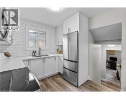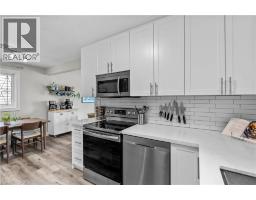 Parkside backsplit fully renovated, carpet free, stunning kitchen with attached garage! Does that sound like your next house? Look no further than this exceptional 1970’s built brick backsplit. Featuring 4 levels of living space perfect for growing families, hobbyists, separate living - this home is solid and well located near amenities, Juravinski hospital, and is DIRECTLY across from Peace Memorial Park, also recently overhauled! The unique floorplan provides interiors access from the basement level garage, find also a clean laundry space, cold cellar, upgraded furnace and lots of storage. Otherwise, enter through the front door under your spacious, recently painted covered front patio into a bright open concept main floor, spotlessly clean with a huge front window view of the park. Also on this main living level find an upgraded kitchen with stainless appliances and modern, white cabinetry. Upstairs, two bedrooms, including a primary stretching the width of the home with new PAX wardrobe and room for a king sized bed! The main bath is updated with a new vanity, modern lighting and exhaust fan. Still need more space? The on grade lower level is its own bed room/gym/office with bright windows steps to the side door. With professionally installed barn doors this space can easily double as a bedroom, and with an upgraded powder room right beside, a great option for guests! Newer concrete work out the side door the fenced yard with storage shed, grass space and patio! New garage door and wifi opener, updates to windows, solid home in a family focused neighbourhood! (id:61594)