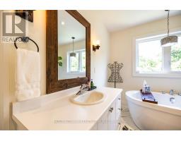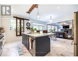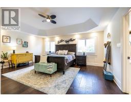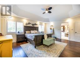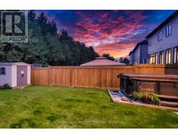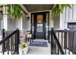 Welcome to 82 Hennessey Crescent, an executive residence in the family-oriented neighbourhood of Ravines of Lindsay. Built in 2022 and ideally positioned on a premium ravine lot backing onto Jennings Creek, this home offers 3,110 sq ft of refined living space and seemlessly blends thoughtful design with upscale finishes throughout. The main level showcases a seamless open-concept layout, highlighted by wide-plank hardwood flooring, a gas fireplace with stone surround and walnut mantle, and expansive windows that frame the private ravine setting. The kitchen is both stylish and functional, featuring quartz countertops, a marble backsplash, and upgraded appliances, ideal for everyday living and effortless entertaining. Upstairs, four generously sized bedrooms each enjoy access to a bathroom. The primary suite offers a tray ceiling, dual walk-in closets, and a well-appointed 5-piece ensuite. A second-floor laundry room adds convenience to the home's practical layout. Additional features include California shutters, a custom tray ceiling in the great room, wrought iron door inserts, and an extra-long driveway with no sidewalk. The fully fenced backyard provides a private outdoor retreat, complete with a hot tub, garden shed, and ample space to bring future plans to life. A polished, move-in ready home offering comfort, privacy, and a quiet connection to nature. (id:61594)