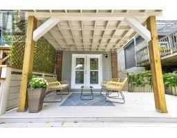 Welcome to 82 Withrow Avenue a rare end-of-row home that truly lives like a semi. Enjoy the bonus of both side-yard and backyard access thanks to brand-new exterior stairs (2025), plus the everyday convenience of permit front pad parking, a coveted feature in this sought-after neighbourhood. Locals know there's something special about Withrow Avenue. Perfectly tucked on a tree-lined street in Riverdales coveted Withrow School District, this home is just steps to Withrow Park, seasonal farmers markets, trendy shops, and vibrant cafés, all with quick TTC access for effortless city living. This century home seamlessly blends character with extensive modern renovations. Nearly every important update has been completed: tiled foyer with added closet, rebuilt staircase (2024), new baseboards and trim (2024), new basement flooring (2024), new French doors with walk-out to a tiered deck (2025), upper family-room walk-out deck (2025), new fridge (2025), gas stove (2022), dishwasher (2022), 100-amp electrical panel (2024), an owned tankless water heater (2025) and an upper deck walk-out from the family room plus a walk-out to a tiered deck through lower-level French doors (2025). Every detail adds comfort, efficiency, and peace of mind. The backyard is a true private retreat, offering three levels of deck space for entertaining or relaxing, overlooking lush perennial gardens that bloom beautifully through the seasons. As an end-unit, natural light pours in from multiple exposures, creating a bright and airy atmosphere throughout the home. Whether its morning coffee on your sun-drenched deck, a stroll through Withrow Park, or evenings entertaining friends, 82 Withrow Avenue delivers the perfect blend of urban convenience, timeless character, and natural charm. (id:61594)