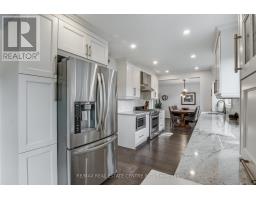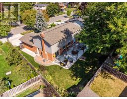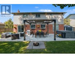 Impeccable 4 brm home loaded with upgrades, located on a quiet street in the mature area of Milton on a large 55' W x 103' pie lot (75' W at rear). Upgrades include kitchen, baths, windows, interior doors, crown moulding, California shutters, wood staircase with iron pickets & hardwood flooring on main & upper level. Spacious bright kitchen with high-quality updated cabinets, granite countertops, marble backsplash, appliance garage, pantry, under-counter lighting, SS appliances, decorative SS range hood. Kitchen open to family room with fireplace with built-ins on either side and walkout to huge private yard with patio, cedar pergola, firepit and hot tub. Upper level has 4 spacious brms including master with 3-pce ensuite and walk-in closet with 16 built-in drawers. 2 full/2 half updated baths, convenient main level laundry. Basement has huge rec room with fireplace and several built-ins for loads of storage, updated 2-pce bath and large office (could be converted to 5th brm). Carpet free main and upper level, recently painted light neutral colour throughout. Lovely street appeal, landscaped, stone front walkway, under eaves lighting, concrete double-wide driveway and walkway along side, large private backyard with mature trees. Double drive and double garage for ample parking. Roof 2015, furnace 2013, C/Air 2023. Conveniently located short walk to parks, amenities, GO transit. Primary public and French school around the corner. Quick access to Hwy 401. Rare high-quality updated home in older uncongested mature neighbourhood, all the work is literally done, just move in and enjoy! (id:61594)