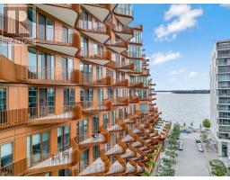 Welcome to Aqualuna, Toronto's iconic waterfront address. This brand new never lived in1bedroom plus den, 2 bath suite offers 809 sq ft of thoughtfully designed living space complemented by two private balconies with stunning city and lake views. Step inside to soaring9ft ceilings and engineered white oak hardwood flooring throughout. The open concept layout is both spacious and practical, blending style with functionality. The designer kitchen features Irpinia cabinetry in a sleek two-tone finish, quartz countertops with a matching backsplash, under-cabinet lighting, a Blanco undermount sink with Hansgrohe faucet, and fully integrated Miele appliances including fridge, cooktop, wall oven, speed oven, dishwasher, and hood fan. A Whirlpool stacked washer and dryer add everyday convenience. The primary bedroom offers its own private balcony, custom closets with organizers, and a spa-inspired ensuite finished with Sivec marble, large-format porcelain tile, and premium Hansgrohe fixtures. A second full bathroom is equally stylish with graphite marble and matte black hex tile, providing comfort for residents and guests alike. Nestled within a 13 acre master planned community, Aqualuna combines striking architecture with a serene lakeside setting. Smart Home Technology via Tridel Connect elevates the living experience, offering modern convenience and peace of mind. This is waterfront luxury at its finest, designed for those who value elegance, comfort, and lifestyle.***THIS IS NOT ANASSIGNMENT SALE***UNIT FULLY CLOSED***Parking Available From Tridel For $85,000. EV Parking Available. For $105,000. (id:61594)