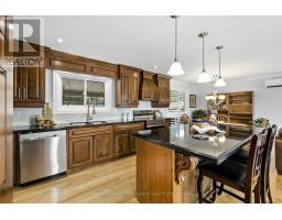 Situated in the sought-after Camborne area at the north end of Cobourg, this charming split-level home sits at the end of a quiet cul-de-sac and offers incredible connectivity with fibre cable, exceptional space, style, and functionality inside and out. The main living area features a bright, open layout with a wall of windows, fireplace, crown moulding, recessed lighting, and California shutters in both the living and dining spaces. The carpet-free interior flows into a beautifully updated kitchen equipped with a large island and pendant lighting, ceiling-height cabinetry, stainless steel appliances, tile backsplash, a coffee bar, pantry, and direct walkout, perfect for summer BBQs and outdoor dining. Upstairs, discover three well-appointed bedrooms and a full bathroom. The lower level adds even more versatility with an additional bedroom featuring a full ensuite and a cozy family room with a stove-style gas fireplace. Step down into the games room, complete with angled wood wainscoting and a bar area. For hobbyists and entertainers alike, the heated two-bay detached garage is a standout, offering a custom man cave setup with space to catch the game, a workshop area, and endless potential for a home-based business or a car enthusiast's dream space. The outdoor living area is equally impressive with a sprawling yard, recessed lighting, a large deck featuring both covered and open lounging zones, and additional storage with a garden shed and a second two-bay garage at the back of the property for recreational vehicles or equipment. A rare opportunity combining rural charm with close proximity to Cobourg's amenities and a short drive to Rice Lake, this property truly offers the best of both worlds. (id:61594)