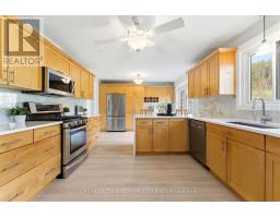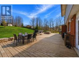 Escape to your own private slice of the countryside, where wide open space, mature trees, and peaceful surroundings create the perfect place to unwind. Set on over 3 acres of beautifully treed land, this updated family home with a 40x40 workshop offers the kind of privacy and room to roam that's hard to find - yet you're still just minutes from major highways for an easy commute. This spacious 4 bedroom, 2.5 bathroom home is ideal for growing families or multi-generational living. The bright main floor flows seamlessly with stylish luxury plank flooring (2024) and is filled with natural light from large windows that frame views of the expansive yard. The heart of the home is the generous eat-in kitchen, featuring quartz countertops (2020), a farmhouse sink and backsplash (2023), and direct walkout access to a large back deck full of country views. The front room offers a space for a home office or formal dining space, while the large living room includes custom built-ins and surround sound for relaxing evenings at home. Upstairs, you'll find new carpeting (2021) and an updated bathroom with a marble vanity (2021), creating a comfortable retreat for the whole family. The finsihed walkout basement adds even more versatility, complete with a 3-piece bath including in-floor heating, a recroom, and extra bedroom - excellent in-law suite potential that's ideal for extended family or guests. The sprawling yard offers endless opportunities for kids, pets, gardening, or simply enjoying the peace and quiet of country living. For hobbyists or tradespeople, the impressive 40' x 40' heated workshop is a rare bonus - fully equipped with car hoist, air system, and mezzanine loft. Additional features; 200 amp service, on-demand hot water (owned), exterior doors (2025), water softener (2025), septic pump (Nov 2025), Amour Stone & garden beds (Nov 2025). This property offers the perfect balance of quiet country living and everyday convenience - the lifestyle you've been dreaming of. (id:61594)