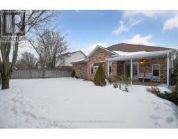 Located in a well-established Courtice neighbourhood, this solid brick bungalow offers comfortable main-floor living with over 1,800 sq. ft. of thoughtfully designed space. Featuring 9 ft ceilings throughout, the main level includes a bright combined living and dining area with large window, a spacious kitchen with adjoining breakfast area and walk-out, and a welcoming family room with hardwood flooring and a gas fireplace. A main floor office with French doors provides an ideal work-from-home space and could easily function as a third bedroom if desired. The primary bedroom features a 4-piece ensuite and double closet, while the second bedroom offers generous space for family or guests. The unfinished basement presents excellent potential for additional living space. The private backyard is surrounded by evergreens, creating a peaceful outdoor setting. Complete with an attached double garage and ample driveway parking, this home offers space, flexibility, and comfort in a desirable community. (id:61594)