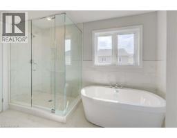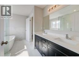For more info on this property, please click the Brochure button. Located at 83 Crosswinds Drive in Kitchener, ON, this open-concept two-story home is 2485 finished square feet with an attached double garage and a paved driveway, withing walking distance of a neighborhood park. The main floor, with a 9-foot-high ceiling, consists of a great room, kitchen, dinette, den with a large front-facing window and a powder room. The great room includes a modern linear gas fireplace, pot lights and a large window with a view of the backyard. The kitchen, brightly lit by pot lights, contains upgraded white cabinetry with upper under-cabinet lighting, premium quartz countertops and a generous black island that includes a breakfast bar. The dinette features a pendant light fixture and a sliding patio door with access to the rear yard. Hardwood flooring covers the main level, except for tile flooring in the powder room and entrance from the garage. An oak staircase to the second floor is brightened by a window in the landing area. The upper level includes four bedrooms, a main bathroom with two vanities and a skylight, as well as a conveniently located laundry room. The master bedroom has a coffered ceiling, a generous walk-in closet and a luxurious ensuite with a free-standing soaker tub, tile shower with glass surround and door and a separate toilet room. Additional items included are air conditioning, five appliances and a chimney-style rangehood in the kitchen. This new home is finished and move-in ready! Property not yet assessed. (id:61594)