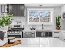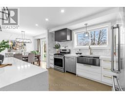 Beautifully renovated and filled with natural light, this stunning 4-bedroom (3+1) home is perfectly situated in a sought-after family neighbourhood backing onto Elms Park. Walk to elementary schools, the public pool, parks, and scenic hiking and biking trails. Just 3 minutes to the 401 and close to Costco and all amenities - this unbeatable location offers both convenience and lifestyle. Fully renovated in 2022, this move-in ready home features a bright open-concept main floor with engineered hardwood flooring throughout. The showpiece kitchen boasts a large island, modern finishes, and seamless flow into the dining and living areas. A striking feature wall with fireplace creates a warm focal point, while a walkout leads to two private patios - ideal for entertaining or relaxing outdoors. A 2-piece powder room and convenient side entrance from the garage complete the main level. Upstairs offers three spacious bedrooms with continued hardwood flooring, new trim, and updated doors. The primary retreat features a beautifully designed 5-piece ensuite, complemented by a stylish 4-piece family bath. The fully finished basement with 8-foot ceilings adds exceptional versatility, offering a fourth bedroom, large rec room, 3-piece bath, and laundry - perfect for an in-law or nanny suite. The Large Private pool-sized yard, with no rear neighbours, is ready for your customization and enjoyment! Major 2022 upgrades include new plumbing and electrical, new stucco and mouldings, and a new concrete driveway, pathway, and rear patio. Move in with confidence and enjoy refined living in an incredible location. (id:61594)