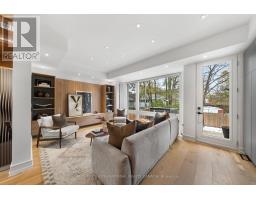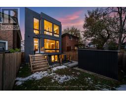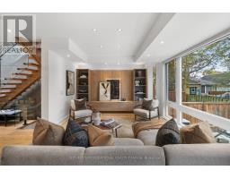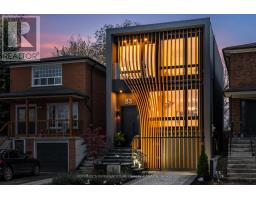 From the moment you arrive, 83 Virginia Avenue stands apart with its striking wood façade and carefully considered design. Inside, the spaces are filled with light, natural materials, and a sense of balance that makes the home both sophisticated and comfortable. The main floor flows effortlessly between living, dining, and kitchen areas framed by floor-to-ceiling windows and rich hardwood flooring. A gas fireplace adds warmth, while the custom kitchen combines quartz counters, integrated dining, and built-in cabinetry designed for everyday living. At the rear of the home, the family room features warm custom-built-ins and opens through a glass door to a lovely private garden with a beautiful garden shed. A sculptural staircase ascends beside a dramatic 27-foot feature wall crowned by a skylight, drawing natural light deep into the home. Upstairs, the primary suite offers a calm retreat with custom wall-to-wall built-in closets, floor-to-ceiling windows, and a spa-inspired ensuite with a walk-in shower and deep soaking tub. Three additional generously sized bedrooms and a well-appointed laundry room- illuminated by its own skylight- complete the second level. The lower level extends the living space with a bright recreation room featuring a wet bar, built-in storage, and a large glass door that opens directly to the backyard. A convenient side-door entry enhances functionality, and a private guest bedroom and full bath provide comfort and flexibility for visitors. A built-in garage and private drive offer parking for three vehicles. Every finish, fixture, and proportion reflects careful thought- creating a home that feels both refined and welcoming. (id:61594)
