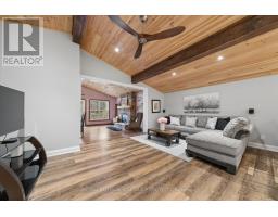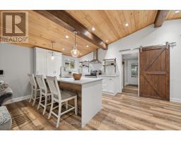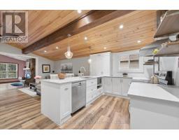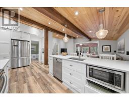 Welcome to this stunning, move-in ready 2-bedroom bungalow, ideally located on a quiet no-exit street with deeded beach access. Situated on a large 50' x 183' fully hedged lot, this property offers exceptional privacy and a serene outdoor setting. The home features impressive high beamed cathedral ceilings and hardwood floors throughout the main living area, creating a bright and airy atmosphere. The renovated centre island kitchen is both stylish and functional, complete with a breakfast bar, stainless steel appliances, quartz countertops and open sightlines to the family room-also showcasing soaring cathedral ceilings. Enjoy outdoor living on the covered deck overlooking the private backyard, perfect for relaxing or entertaining. Additional highlights include a one-car garage with convenient walk-through access to the home. Located close to all amenities, including schools, parks, transit and shopping, this home combines comfort, style, and an unbeatable location. (id:61594)