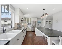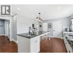 Perfectly positioned across from Lake Ontario, this thoughtfully renovated Beach Strip home offers an exceptional lifestyle just steps to the waterfront trail and sandy beach. Extensively updated and meticulously maintained a true turn-key opportunity. Inside, rich dark floors and a warm, cohesive palette set the tone. The inviting living room centres around a beautiful gas fireplace with shiplap surround and wood mantle. The chef-inspired kitchen features white shaker cabinetry, marble subway tile, leathered stone countertops, a farmhouse sink, professional gas range, and a generous island with seating and walk-in pantry. Full renovation completed December 2020. Three well-appointed bedrooms are served by a beautifully updated main bathroom featuring subway tile, soaker tub, and matte black fixtures. The basement presents a spacious open rec room , storage with excellent potential and separate side entrance. The detached 30'x30' garage (built 2023) is a standout 8ft doors, 100-amp panel, heating and cooling, finished with pot lights and built-in storage. Ideal as a garage, gym, studio, or workshop.Huge fully fenced in backyard complete with concrete patio! Minutes to Confederation Beach Park and the QEW. (id:61594)