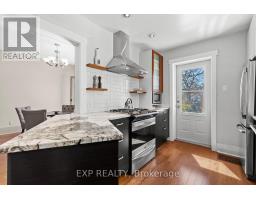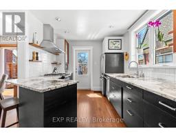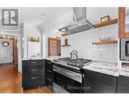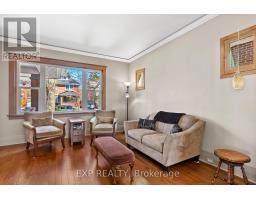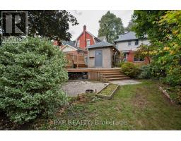 839 Dufferin is welcoming with great curb appeal and a covered porch. Sitting on a deep lot on a quiet street, this red brick century home is well maintained and feature rich. Inside is a blend of vintage and modern with 9 ft ceilings and oak floors throughout the main floor. The foyer maintains the original light switches and light fixture. French doors separate the dining and living areas, and the updated pendulum style kitchen has Quartzite countertops, stainless steel appliances, soft close cabinetry and some unique storage. The dining room features dual opening patio doors that bathe the room with light in the dull winter months and open onto the large deck with awning and landscaped back yard in summer. On the 2nd floor there are 2 spacious bedrooms with organized closets, and a large 4-piece washroom with laundry and clever clothesline. A den/nursery leads to the 3rd floor primary which has a built-in dresser, enough space for a king-sized bed and a powder room with heated granite flooring. A heated tile floor warms the multi purpose basement which features a 2-pc washroom, a utility sink, a murphy bed and lots of built-in and hidden storage. The semiprivate laneway leads to a parking space and a one car garage. A large swing gate from the driveway allows for full access into the tree shaded yard. The yard features several decks and patios and an outdoor gardening sink. Freshly painted and move in ready. Updates include heat pump and furnace(2022), 50yr fibreglass shingles(2019), copper plumbing, 200 amp electrical service, wall and attic insulation, and newer double glazed windows throughout (except stairwell -original). (id:61594)