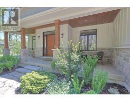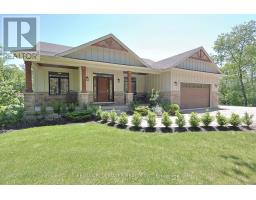 Custom built modern bungalow on a one acre lot surrounded by nature near the Pinery Provincial Park. Drive through the tree lined driveway and your greeted with your new home built in 2021 by Nicholson Builders. Great curb appeal with the landscaped gardens and flagstone walkway leading to the covered front entrance and front porch seating area. Inside, you have a 1742 sqft open concept design with well appointed finishes and flowing with natural light featuring engineered hardwood floors throughout the main floor. Step inside the front foyer and you feel the warmth of the space that invites you in and makes you feel at home. As you enter the living room you will notice the coffered ceilings above and a stone feature wall around the gas fireplace. The kitchen features quartz countertops on two tone cabinetry, large island with waterfall countertop edges, herringbone patterned tile backsplash and stainless steel appliances. Spacious eating area off the kitchen and living room with large windows overlooking the back yard and access to the covered deck. Main floor primary bedroom suite with walk in closet and beautiful ensuite that includes a double vanity and tile shower. The main floor also includes his and her separate offices that border the front foyer overlooking the front entrance or easily include a guest room on the main floor as both offices have full closets. There's an additional full bathroom off the main living space and a mudroom with laundry as you enter from the 22'x24' double car garage. Full finished basement with large family room that features and electric fireplace, 3 bedrooms for kids and guests or crafts, full bathroom, workshop for the handy person and lots of storage in the utility room. Entertain friends in your private back yard as you enjoy the 18' x 14' covered back deck with vaulted ceilings and pot lighting overlooking the tree lined natural setting and flagstone walkway leading to your armour stone firepit. BONUS: GENERAC Generator! (id:61594)