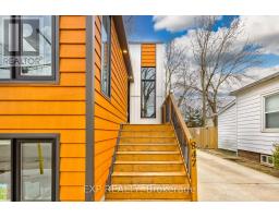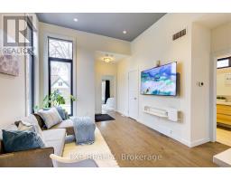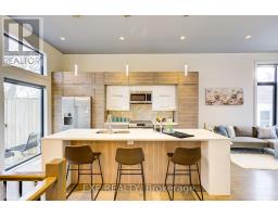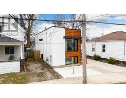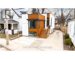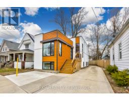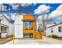 This stunning, uniquely designed modern home sits in the heart of London, offering a prime location near shopping, downtown, and the vibrant Old East Village. Built around 2016, it blends contemporary style with an established neighbourhood feel. The open-concept layout maximizes space, featuring soaring 11-foot ceilings, large windows throughout including oversized basement windows and high-end finishes that create a bright, inviting atmosphere. The sleek kitchen boasts a beautiful, oversized island perfect for hosting guests and everyday living, complemented by quartz countertops, chic cabinetry, and stainless steel appliances. A spa-like main bath offers a dual vanity, soaker tub, and standalone shower, while the main-level bedroom provides flexibility as a home office. The fully finished basement includes a cozy living space, two additional bedrooms, and another full bath with a double vanity, offering potential for an in-law suite. Brand new AC installed a year ago. Close to transit and with quick access to the 401 via Highbury, this home is ideal for a small family or working professionals seeking luxurious finishes at an amazing price or as a lucrative income property. Move-in ready and truly impressive, this home is a rare find in the area! (id:61594)