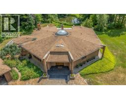 This truly is a property unlike anything you've seen before, hidden on 8 acres of complete privacy just outside of Drumbo. Welcome to Xanadu - this extraordinary 9-sided home, a marvel of Baha'i-inspired architecture. Pause to take a breath as you enter the central hall, where light, space, and geometry combine in a way that will stop you in your tracks. This grand room connects you to all 3,500sqft of the main floor living space, which includes 3 bedrooms, 2.5 bathrooms, a massive study or family room, sunroom, gourmet kitchen with built-in appliances, and a formal dining room that will leave you speechless. And did I mention the hidden staircase? Every room has been designed to frame a new view of the property's serene landscape, while the walkout basement makes it easy to extend your daily living into the outdoors. A large spring-fed Koi pond, private wooded trails, a detached garage, and a large shop create an estate that is both peaceful and practical. Crafted in steel and concrete with geothermal heating, this home is as enduring as it is extraordinary. Words honestly cannot describe this one - it must be experienced to be believed. (id:61594)