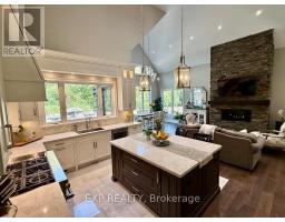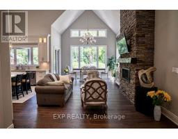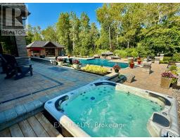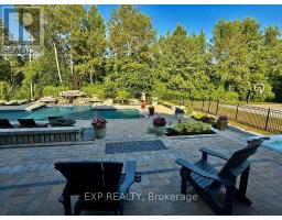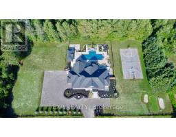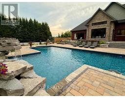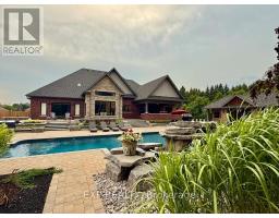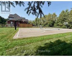 Welcome to an extraordinary estate where luxury, comfort, and convenience effortlessly converge. Nestled privately behind two custom homes on a sprawling 1.77-acre lot, this exceptional residence is an entertainer's paradise, thoughtfully designed with impeccable craftsmanship and timeless elegance. At the heart of this home lies an extraordinary gourmet kitchen featuring custom cabinetry and an expansive double butler's pantry with a secondary back kitchen. Each bedroom serves as a luxurious private retreat with spa-inspired ensuite bathrooms. The primary suite redefines opulence with a custom-designed five-piece ensuite and a dressing room spacious enough to serve as an additional bedroom. This suite also offers seamless walk-out access to a professionally landscaped backyard oasis. Soaring ceilings are complemented by plaster crown moulding, exquisite millwork, and built-in speakers. A thoughtfully designed open-concept layout seamlessly connects the family room, main-floor bedroom, and a combined mud and laundry room with garage access, enhancing everyday living. The finished basement epitomizes high-end leisure and entertainment, featuring a full-size bar, gym, stereo surround sound, and five TVs, including a 120-inch home theatre screen and an inviting fireplace. Step outside to your private resort's meticulously landscaped yard, enveloped by lush, low-maintenance gardens and frequented by nature, including occasional deer sightings. Enjoy endless relaxation and entertainment with a custom pool, waterfall, hot tub, covered patio with dual built-in grills, and a change room. Also included: your very own 100-foot golf hole, full-size basketball court, and pickleball court, transforming every moment into a five-star experience. This distinguished property offers a rare opportunity to own a home designed for the most discerning homeowner, providing unparalleled luxury and an idyllic retreat in an exclusive, serene setting. (id:61594)