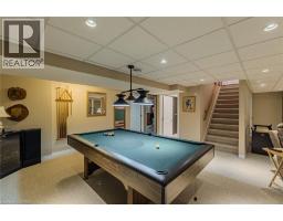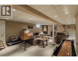 Welcome to this beautifully maintained brick bungalow in Simcoe’s desirable east end, offering over 2,500 sq. ft. of finished living space and no rear neighbours for added privacy. The open-concept living and dining area features hardwood flooring and a cozy corner natural gas fireplace. The kitchen offers granite countertops, modern appliances, and a convenient breakfast peninsula. Step outside to an interlocking patio with sunshade, overlooking a deep, fully fenced yard with designer shed—perfect for relaxing or entertaining. The professionally finished basement adds exceptional living space with a stone gas fireplace, spacious family/games room with pool table and shuffleboard, fourth bedroom, 3-piece bath, large storage area, and cold cellar. A move-in-ready home in a sought-after neighbourhood close to amenities. In ground sprinkler system services the front yard. (id:61594)