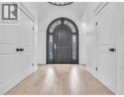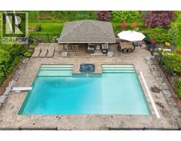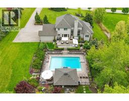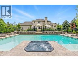 This is your Dynasty! Nestled on one of the most prestigious streets in Petersburg, this grand home sits on a 1.33-acre lot, showcasing craftsmanship and quality. Featuring 4 bedrooms, 5 baths, and triple-car garage. Step through the custom oversized wood front door or auxiliary entrance and experience clean, timeless décor. A two-story living room with coffered ceilings and a floor-to-ceiling fireplace sets the stage. A custom kitchen, with waterfall island, built-in Thermador appliances, and separate servery, alongside main-floor laundry, office, and a luxurious primary suite with walk-in closet and spa-like ensuite, including a two-person glass shower, soaker tub, heated floors, and high-end fixtures. Upstairs hosts 3 spacious bedrooms and 2 renovated bathrooms. The finished basement offers polished concrete floors, a central bar, wine cellar, games room, and updated bath. Professionally landscaped grounds feature trees, shrubs, rock, and lighting. The backyard is a paradise, with a heated 20x40 pool, built-in spa, pool house cabana with washroom, changeroom, dining area, and lounge with gas fireplace. A multi-level deck includes a hot tub, natural gas hookups for a fire table and BBQ. Adjacent greenspace offers potential for an outdoor rink, sports court, or workshop. This architectural masterpiece embodies luxury and convenience at every turn. With high-end finishes, state-of-the-art appliances, and thoughtfully designed spaces, it is the epitome of comfort and elegance; an unrivaled retreat. (id:61594)