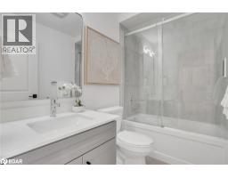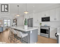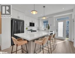 A STANDOUT NEW-BUILD WITH HIGH-END FINISHES, A STATEMENT KITCHEN & ELEVATED UPGRADES! Set within the Townes at Deer Springs by Honeyfield Communities, this standout new build commands attention with its brick-and-vinyl exterior, matte black keypad entry, and fenced backyard designed for relaxed evenings and effortless entertaining. Natural light pours through an open layout enhanced by 9 ft smooth ceilings, modern trim, sleek railings, oak-finish stairs, and upgraded water-resistant laminate and tile flooring that create a crisp, contemporary atmosphere throughout. The statement kitchen anchors the space with tall uppers, designer two-toned cabinetry with a contrasting island, Caesarstone quartz countertops, an undermount sink, full-height tiled backsplash in a brick pattern, under-cabinet valance lighting, pot lights, and a generous island that naturally draws people together, supported by a 6-piece appliance package tailored for seamless hosting. Upstairs, the primary retreat offers a calming escape with a walk-in closet and a beautifully finished 4-piece ensuite featuring a frameless glass shower and a Caesarstone quartz vanity, while two additional bedrooms share an upgraded 4-piece bathroom with a frameless sliding tub door and refined tilework. The lower level adds flexibility with a French-door office and walkout to the deck, paired with a main-floor powder room and smart laundry setup that keeps daily life running smoothly. Two balconies with glass railings invite slow mornings and sun-soaked evenings, while the oversized garage and driveway add everyday ease. A low monthly fee covers key maintenance, leaving more time to enjoy nearby parks, schools, dining, golf, and the community centre that keeps the lifestyle feeling connected and vibrant. (id:61594)