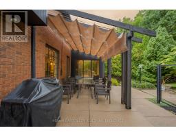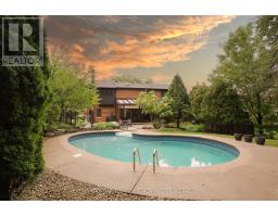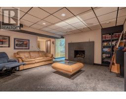 Welcome to 86 Tremont Drive, a one-of-a-kind residence on one of St. Catharines most desirable streets. Nestled near the top of the Niagara Escarpment in the sought-after south end, this prime cul-de-sac location backs onto protected greenspace with access to scenic walking trails. The private, mature lot features a backyard retreat with inground pool, patio with trellis, cedar sauna, and bocce court. This striking two-storey brick home offers over 3200 sq ft of living space, a finished 2-car garage with tile floor and drain, and a modern exterior with upgraded black windows and glass-paneled garage doors. A grand foyer welcomes you with an open-tread staircase and custom stainless-steel railing. The sunken living room with hardwood floors and two-sided gas fireplace opens to a formal dining room, while the refaced kitchen with flat-panel cabinetry and granite counters flows into a custom solarium with patio doors to the backyard. A sunken family room with gas fireplace, dramatic powder room, and laundry with garage access complete the main floor. Upstairs, three bedrooms include two secondary bedrooms with ample storage and a shared bath, plus a dramatic primary suite with custom built-ins, black granite tile, private sitting room with skylights, and spa-like ensuite with soaker tub, bidet, and walk-through dressing area. The fully finished lower level adds a rec room with gas fireplace, wet bar, walk-out to the backyard, bath, storage, and cold cellar. Designed by renowned John Kazmir, this home blends mid-century influence with bold custom features, offering a rare combination of exceptional location, architectural presence, and private outdoor oasis. (id:61594)