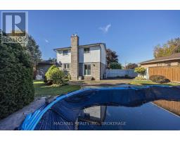 Please consider this: double-wide, extra-long, paved driveway (routinely sealed) with curbs and walkway, fully landscaped, a handsome exterior, large front porch, plenty of space to sit outside and sip your morning coffee. Oversized double car garage with inside entry to home, plus door to the backyard, room to park two cars, and STILL have a workshop and plenty of storage space, PLUS there's a change room. Why? For the inground pool, of course! Back to the main entrance...step through the front door; perfectly sized foyer with coat closet, ceramic tile flooring, classic curved railing dresses up the stairs to second floor. Open concept living/dining with hardwood floors, and heres something I love: when you can see out both the front and back yard windows from your main living space. Classic kitchen with solid cabinetry, plenty of storage, recessed pantry, eat-in kitchen, fridge, stove, dishwasher included. Sink overlooks the lush and private backyard. Sliding patio doors from dining to interlock brick patio, kidney shaped in-ground pool with slide, and garden shed. Still plenty of grass for dogs to run, kids to play, and to garden. Upstairs 3 good sized bedrooms, full bathroom with updates. Main floor also has a two-piece bathroom...now heading to basement...fully finished basement with high ceilings, large rec room. Corner gas fireplace with brick surround, brand new bathroom with walk-in shower & glass doors. Bonus room for office/guest area/bar/kitchenette. Utility room with gas forced air furnace (2018), gas hot water tank, laundry sink and washer & dryer. Insulated vinyl siding, contemporary windows and doors, central air (maintained regularly). For peace of mind, an INCREDIBLE Generac Generator stands ready to power the entire home during outages. 40 year Architectural Shingles. Bonus: Mere steps to soccer fields, skate park, La Salle High School. Walk to conveniences such as Shopper's Drug Mart. All on a quiet street near CFB Kingston. (id:61594)