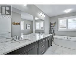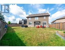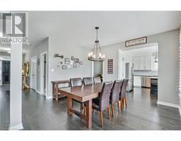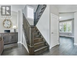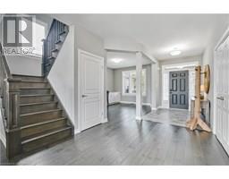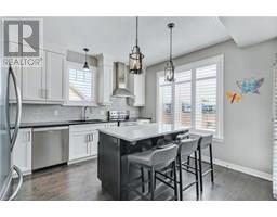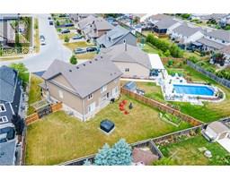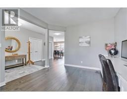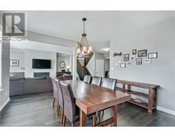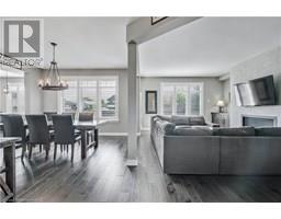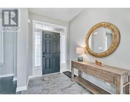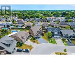 Welcome to 87 Anastasia Blvd - a beautifully upgraded 6-bedroom, 2.5-bath home located on a quiet, family-friendly street in the heart of Smithville. Situated on an oversized pie-shaped lot, this 2,860 sq ft residence offers a perfect blend of comfort, functionality, and high-end finishes. The main floor showcases a stunning professional wood staircase, hardwood flooring on main level, California shutters, upgraded LED lighting, and custom cabinetry in both the family room and den. The gourmet kitchen with quartz counters opens to a spacious great room and dining area, with walkout access to a fully fenced yard featuring a pergola with double gate, enclosed side storage with power and lighting, and a Hydropool self-cleaning hot tub with energy-saving controls for year-round relaxation. Upstairs, you'll find five generous bedrooms, including a luxurious primary suite with double sinks, a soaker tub, and a double rain head glass shower. The main bathroom is thoughtfully designed with dual sinks, a tub/shower combo, and dual access from the hall and two bedrooms. The basement includes a sixth bedroom, rough-in for an additional bathroom, large rec space, and a dedicated storage room with solid built-in shelving. Practical upgrades include an ERV system, high-efficiency gas furnace, sump pump with battery backup and alarm, and a main sewer backwater valve. Curb appeal shines with a newly sealed driveway with parking for 4, low-voltage exterior lighting with dusk-to-dawn settings, privacy-wall on front porch, and a wired video security system. The double garage offers interior access, side access, two openers with remotes/keypads, and upgraded 240V service for workshop as well as dedicated EV wiring. Truly a must-see home that's been lovingly maintained and enhanced with thoughtful, functional upgrades throughout. (id:61594)