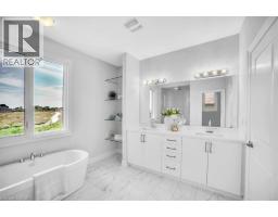 Introducing one of the most distinguished homes in the sought-after Stonegate Park community—welcome to 87 Aquasanta Crescent. Set on a premium lot backing directly onto a naturalized park and open space, this Capri Grande luxury model is a rare opportunity to own one of Hamilton’s most scenic west mountain homes, where tranquil surroundings and breathtaking sunsets become part of your daily experience. With 2,505 square feet of impeccably designed space, this fully detached home features a 10-foot main floor, smooth ceilings, and a seamless blend of premium porcelain tile and 6-inch oak hardwood flooring. The open-concept layout is anchored by a spacious great room with a linear fireplace and custom lighting, flowing effortlessly into a chef’s kitchen outfitted with two-tone urban cabinetry, taller uppers, pots & pans drawers, deep fridge cabinet, chimney-style hood, stainless steel appliances, and an extended island with integrated sink, recycling drawer, and built-in microwave drawer. A walk-in pantry and main floor laundry complete the convenience. Expansive windows bathe the interior in natural light and draw you toward the covered loggia, perfect for quiet coffee mornings or sunset wine evenings overlooking the natural landscape behind. Upstairs, the oak staircase leads to four spacious bedrooms. Two share a stylish Jack & Jill ensuite, one enjoys its own private ensuite, and the primary suite spans the rear of the home with serene park views, a spa-like ensuite with freestanding tub, glass shower, and private water closet. This home is move-in ready in as little as 30 days and located minutes from amenities, top schools, and major transit routes. Luxury. Nature. Community. This is 87 Aquasanta. (id:61594)