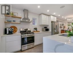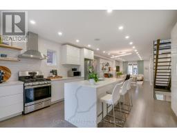 Your Dream home wrapped up on Bowmore! This amazing home underwent an extensive modern renovation completed in 2017 exuding style and attention to detail. Airy and spacious home offers approx 1560 sq ft with 3 bedrooms, 4 washrooms and a 700 sq ft finished lower level. Thoughtfully designed open concept main floor is the perfect setting for everyday living and hosting friends & family. Lots of natural light, hardwood floors, and sleek pot lights throughout. A striking modern staircase with glass balustrades is central to the living space, with light streaming from the skylight above with charming exposed brick walls. The living room boasts a cozy fireplace, dining area features a large window with window seat. At the heart of the home is the contemporary kitchen starring a low maintenance Calacatta marble, quartz counters, stainless steel appliances, a chef-style pull-down faucet, ample storage and a large centre island with a breakfast bar and waterfall counters. A convenient powder room and mud room complete the main floor, with the mud room opening to a fully fenced yard with a flagstone patio, mature cedars, string lights, landscape lighting, sectional seating, umbrella and BBQ. Upstairs, the primary suite features wall to wall closets, a built-in window seat, access to a finished attic space with skylight and a light filled ensuite with vaulted ceilings, a separate shower and a soaker tub. Two additional bedrooms, along with a tandem office and a modern 3-piece washroom. The finished lower level extends the living space of the home, with a spacious rec room featuring built-in shelving and a charming exposed brick wall, 3-piece washroom and a laundry/mechanical. Family friendly neighbourhood, steps to Bowmore Public School. Convenient access to public transit and Williamson Park Ravine. Enjoy everything that this vibrant Upper Beaches community has to offer, with an array of shops, cafes, and restaurants. Open House Sat April 18th & Sunday April 19th 2-4pm. (id:61594)