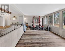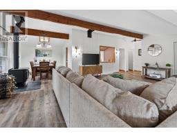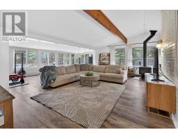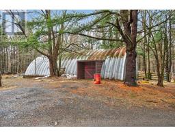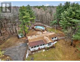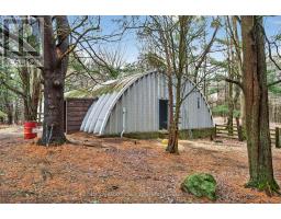 Nestled in the trees this 7-acre property has it all; conveniently located on a quiet road within walking distance to the 1000 Island Parkway waterfront trail, a marina, and a quick hop onto the 401 or to the bridge to the US. You have it all on one level with 2 bathrooms, 4 bedrooms, plus large laundry room and separate mudroom features a wash sink and sliding doors to the deck and pool. An open concept kitchen, dining and living area takes advantage of the views and streams with sunlight. Vaulted ceilings make the space bright and airy a skylight adds even more light in the dining area. Lovely wood cabinetry in the kitchen with lots of storage and a handy breakfast bar or additional workspace. The living room is large, and light filled and you'll love to cozy up by the stove on those chilly nights. There is also a door for access to the wrap around deck. Outside there is plenty of room for all your hobbies to include a large shed with attached kennel or use as a chicken coop, a fenced area currently housed by chickens and a goat and to top it off a large steel Quonset hut that provides endless options. Maybe boat storage or it once was used for horses or a fabulous workshop equipped with power. To add to this paradise, you have a lovely in ground pool surrounded by decking that can handle all your entertaining or relaxing dreams. The pool and deck area are at the rear and offer complete privacy surrounded by your own woods. If you are a nature lover wildlife abounds at this gorgeous location. Nicely set back from the road and featuring a circular driveway. Do not miss out on this! (id:61594)