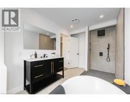 Welcome to 87 Lafayette Drive, a fully renovated home set in a quiet and highly sought after pocket of North End St. Catharines. Updated top to bottom with new flooring, paint, kitchen, bathrooms, appliances, siding, roof, and mechanicals, this property offers a fresh and modern feel throughout. The main floor features a bright living room with a built-in electric fireplace, a dedicated dining room, a brand new kitchen, and three comfortable bedrooms alongside a newly finished 4-piece bathroom. The standout of the home is the new addition above the garage, completed with permits and designed as a private primary retreat. This upper level includes a spacious bedroom, a separate sitting area, and a beautiful 4-piece ensuite with a glass shower and a deep freestanding soaker tub. The lower level adds even more space with a generous rec room, a wet bar, a 3-piece bathroom, and an oversized storage and laundry area, along with a walk-up to the fully fenced backyard. With a new furnace, a 2-year-old A/C unit, an insulated automatic garage door, and parking for four cars plus a 1.5-car garage, this home blends comfort, function, and thoughtful upgrades. Beautifully finished and located in one of the most established neighbourhoods in the city, this home blends style, comfort, and convenience in a prime location. (id:61594)
