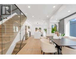 Urban sophistication meets contemporary comfort in this show-stopping East York detached home! With 3 bedrooms, 4 bathrooms, and a private drive for up to five cars!! Tucked away on a quiet, one-way residential street, it offers rare privacy in the heart of the city just steps from everything that makes East York so desirable. Step inside and be captivated by sleek design, seamless flow, and natural light at every turn. The bright, open-concept living and dining area features a striking feature wall and designer lighting that set the tone for stylish entertaining. The chefs kitchen steals the show with a massive quartz waterfall island, gas range with pot filler, floor-to-ceiling cabinetry, and glass display accents statement of both beauty and function. From here, walk out to your private entertainers deck and sprawling backyard, perfect for summer nights and weekend gatherings. Upstairs, your primary retreat awaits, complete with a loft-style lounge area under a skylight, a double closet, and a spa-worthy ensuite with floating vanity, rainfall shower, and custom glass detailing. Two additional bedrooms offer custom built-ins, warm hardwood flooring, and a chic shared bath with designer finishes. The finished lower level adds lifestyle flexibility with a cozy recreation room, feature wall, and 3-piece bath, ideal as a fourth bedroom, guest suite, or media space. Unbeatable location just minutes to Donlands Station, The Danforth, parks, schools, and the DVP. (id:61594)