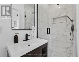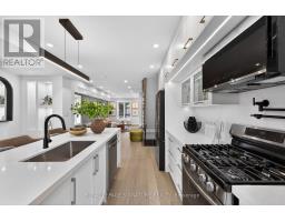 Welcome Home! Rarely offered and hard to find, this deep-lot detached stunning home in the heart of East York delivers the space, style, and location buyers have been waiting for, tucked away on a quiet one-way street just steps to the Danforth, transit, parks, and schools, with the added bonus of a private drive that fits up to five cars; inside, a bright open-concept layout is filled with natural light, featuring a striking statement wall and designer lighting that flows effortlessly into a showpiece kitchen with a quartz waterfall island, gas range with pot filler, floor-to-ceiling cabinetry, and sleek glass accents, all designed for both everyday living and effortless entertaining, with a seamless walkout to a large deck and expansive backyard that feels like your own private retreat; upstairs, the primary suite offers a unique loft-style lounge under a skylight, a double closet, and a spa-inspired ensuite with a floating vanity, rainfall shower, and custom glass finishes, while two additional bedrooms include built-ins, warm hardwood floors, and a stylish shared bath; the finished lower level adds even more versatility with a cozy recreation space, feature wall, and a full 3-piece bath, perfect for guests, a fourth bedroom, or a media setup, all just minutes to Donlands Station and the DVP, making this a rare opportunity to enjoy both privacy and convenience in one of East York's most desirable pockets. (id:61594)