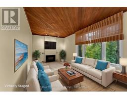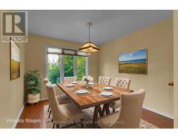 Discover a truly exceptional residence where nature and unique design blend seamlessly to create a one-of-a-kind, four-bedroom home unlike any other. Thoughtfully upgraded and lovingly maintained over the years, this property welcomes you with expansive windows that flood the space with natural light. A central floating staircase stands as a sculptural centerpiece, while the open-concept main floor offers versatile living and family rooms that adapt to your lifestyle. Step from the kitchen onto an elevated deck, descend to the garden below, and find yourself immersed in lush vegetation, with a private path leading to picturesque Collins Creek. Upstairs in addition to the 4 bedrooms, a hidden room awaits -- perfect for a play area or home office --while a spacious bonus room under the garage offers possibilities for a workshop or personal gym. The lowest level features a full-height storage area or cold cellar and a dedicated utility room. This home defies convention, inviting you to imagine and create spaces that suit your vision, rather than asking you to fit into a mold. Take a walk through and let inspiration guide you --opportunities like this are rare, and this remarkable home is ready to become your personal sanctuary. Note: Original architecturally designed house plans and more information about this home are available in the docs sections. Ask your realtor for a copy or email and request one. (id:61594)