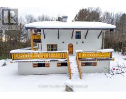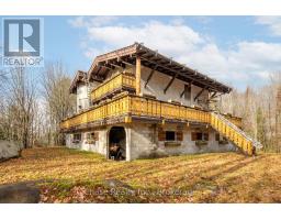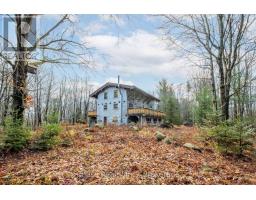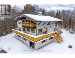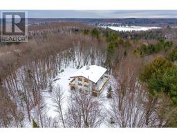 Situated on a private hill in Port Sydney, this European-inspired residence is a refined luxury retreat immersed in nature. Set on a 5-acre lot, surrounded by mature trees and frequent wildlife sightings, the property offers exceptional privacy and tranquility-your own secluded sanctuary.Offering approximately 3,000 sq. ft. of impeccably crafted living space, this 3-bedroom, 2-bathroom home showcases timeless elegance with a dramatic post-and-beam aesthetic throughout. Two sophisticated living rooms are anchored by grand stone fireplaces, while the primary suite features its own striking stone fireplace, creating an intimate and indulgent atmosphere.High-end finishes define the interior, including quartz countertops, luxury vinyl plank flooring, and architectural open-rise oak staircases. The primary suite opens to a private second-floor exterior deck, while a wrap-around, partially covered deck extends the main living area-perfect for entertaining, relaxing, and enjoying the peaceful surroundings in any season. Lower floor has a fully covered wrap around storage area. A double car garage adds both convenience and functionality. Located within close proximity to six pristine lakes, this exceptional property offers a rare blend of European character, modern luxury, and a coveted natural setting, delivering an elevated lifestyle of comfort, privacy, and year-round outdoor enjoyment. Opportunity to build a second dwelling! (id:61594)