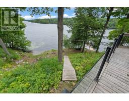 Welcome to 8884 Canoe Lake Rd, a stunning year-round retreat on Kingsford Lake with 430 ft of shoreline directly facing Frontenac Provincial Park. The main level welcomes you with immediate water views and features engineered hardwood throughout the living, dining, and kitchen areas. Off the foyer, youll find a versatile office space with a passthrough to a 4 pc main bath and laundry area, which leads to a wraparound screened porch. The spacious living room includes a wood-burning fireplace and in-floor heating, while the updated dining room and kitchen with stone countertops overlook the water. The second level offers 2 large bedrooms with ample storage and another 4 pc bathroom. The exterior offers a detached garage with loft including a 4th bedroom, living space featuring a 3 pc bathroom, woodstove, water/sewage, and fully insulated, making it perfect for guests, a studio, or workshop. Additional highlights include a newer metal roof, drilled well, wood siding, and over 1.5 acres of treed property with short trails leading to a deck, quaint beach area, and private dock, ideal for swimming, kayaking, and fishing. Recent updates include: dining room windows, in-floor heating (2012), hardwood floors, furnace/heat pump (2012), and metal roof (approx 10 yrs). You'll also enjoy boating access to Birch Lake, giving you even more opportunity to explore, paddle, and take in the natural beauty of the area. Dont miss this rare opportunity to own a lakeside retreat! (id:61594)