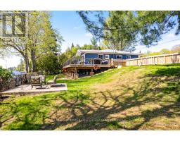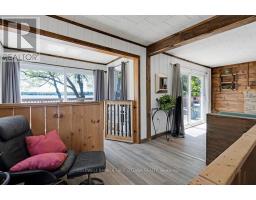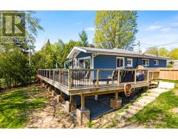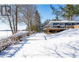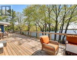 Upgraded home on Big Rideau Lake, with the amazing panoramic lake views. Lovely family home on the lake or, your wonderful vacation retreat for any time of the year. Light bright bungalow offers expansive spaces inside and out for easy living - plus, all fenced yard is perfect for pets and young children. Freshly painted in 2024, the three bedroom, 1.5 bathroom home has large welcoming foyer with big closet. Livingroom stone fireplace includes energy-efficient pellet stove insert with new 2025 blower fan. Wide patio doors open to huge expansive deck that keeps you connected to the outdoors, facing southeast over the lake. Extra-large dining area open to living room and is adjacent to contemporary kitchen with ledger stone backsplash and lovely birch cabinetry. Relaxing den offers you extra flex space. Den also opens to sitting nook with more patio doors to the deck. Main floor powder room and laundry station. Comfortable primary bedroom with attractive tongue & groove pine ceiling. Two more good-sized bedrooms. The 4-pc bathroom updated 2023 with shiplap wall and rain head shower-tub. Home has heat pump for heating and, cooling with 2020 mini-split wall unit. Updated vinyl windows and sliding doors are 3 to 6 yrs old. Roof shingles new 2020. Hook up in place for a generator. Detached single car garage has hydro. Guest Bunkie completely insulated and has patio doors to its own wrap-about 2022 covered deck. For toys and tools, you have garden shed, storage shed plus small coverall. Gentle, slightly sloping, access to the 128 ft waterfront with boat lift and a dock that's 6' deep at end. Shoreline clear for swimming and has shallow area for young children. Big Rideau Lake is the largest and deepest lake in the Rideau Canal System with great boating and fishing for Lake Trout, Largemouth & Smallmouth Bass plus Northern Pike. Bell hi-speed and satellite available. Cell service. Private road fee for maintenance and snow plowing is approx $400/year. Just 15 mins to Perth. (id:61594)