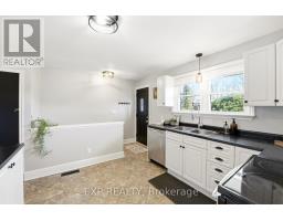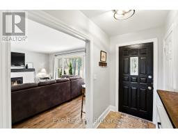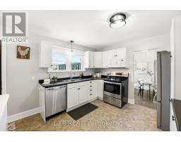 Welcome to 89 Jocelyn St, a bright 3-bedroom brick bungalow in Port Hope with the easy, practical layout buyers keep hoping to find. Set on an approx. 0.19-acre lot, the home is wrapped in mature trees, open lawn, and a treed outlook that gives the setting a calm, established feel. Inside, a carpet-free main floor offers warm vinyl flooring through the living, dining, and bedrooms, with tile in the foyer, kitchen, and renovated 4-piece bath. The living room is made for everyday comfort, with a wide front window and a white brick fireplace with electric insert, while the connected dining area keeps gatherings simple and natural. The kitchen brings together white cabinetry, dark counters, stainless steel appliances, a double sink under the window, pantry storage, and direct flow toward the deck for easy outdoor meals. All 3 bedrooms sit on the main level, including a comfortable primary with walk-in closet/storage nearby. Downstairs, the unfinished lower level gives you an impressive amount of usable space for laundry, storage, hobbies or future plans. Outside, enjoy a covered front porch, side/rear deck, garden shed, paved private drive with parking for 4, and a deep yard framed by mature maples. Major practical wins include a 2024 roof, 2024 bathroom renovation, gas forced-air heat, central air, municipal water, and septic last emptied in 2024. Close to schools, grocery, recreation, trails, Highway 401, downtown Port Hope, and the Ganaraska River-this is a solid bungalow with everyday comfort now and room to make it your own. (id:61594)