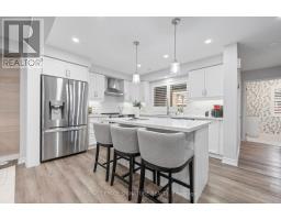 Beautiful End Unit Townhome in Sought-After Milton! This bright and modern home offers an open-concept main floor with new vinyl floors and pot lights throughout. The upgraded kitchen features a large Centre island, quartz countertops, ceramic backsplash, stainless steel appliances, and a breakfast bar. The spacious living and dining areas provide plenty of room for relaxing and family gatherings, with a walk-out to a large covered terrace complete with a natural gas line for BBQs. A conveniently located laundry room with a laundry tub and custom cabinets offers extra storage for everyday essentials. The Primary Bedroom includes a walk-in closet and a private 3-piece ensuite. Additional bedrooms are generous in size with vinyl floors, large closets, and oversized windows that fill the rooms with natural light. The welcoming foyer features ceramic flooring, inside garage access, and extra storage space. Enjoy a 1-car garage plus parking for 2 more vehicles on the private driveway with no sidewalk. Located just minutes from highly rated schools, community centers, parks, trails, GO Station, hospital, shopping, and all the amenities families love. Move-in ready - a wonderful place to call home! (id:61594)