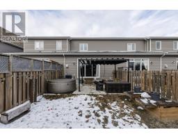 This lovely 8-year-old townhouse sits in Kingston's east end. The bright main floor offers an open concept plan with a beautiful kitchen with quartz counters, a glass backsplash and a corner pantry. This area opens to the dining area and living room, which features a corner gas fireplace and a huge patio door leading to the rear fenced yard with a large concrete patio and no rear neighbors. Lots of pot lights, 9 ft ceilings, a 2pc bathroom and laundry finishing off the main floor. Up the hardwood stairs, you'll find 3 good-sized bedrooms and the main bath, including the primary suite with a 4pc ensuite and a large walk-in closet. The lower level is a blank slate for you to finish however you'd like with a rough-in for a future bathroom. Attached garage with inside entry, carpet-free throughout, all appliances included, and situated on a quiet street close to CFB Kingston, schools and all East End amenities. (id:61594)
