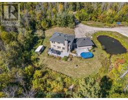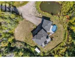 Discover the perfect blend of luxury and privacy with this impressive 4-bedroom, 3-bath home set on almost 9 acres of land. From the moment you step inside, the open-concept main level welcomes you with gleaming hardwood floors and abundant natural light. The spacious living area flows seamlessly to your expansive back deck, ideal for entertaining or simply enjoying the peaceful surroundings. The heart of the home is the chef's dream kitchen, featuring granite countertops, a large island, custom-built cabinetry, stainless steel appliances, and a spacious walk-in pantry. A mudroom with sink and direct access from the oversized double garage adds both convenience and practicality. Upstairs, retreat to the luxurious primary suite, complete with a spa-like ensuite and a generous walk-in closet. Two additional bedrooms, a 4-piece bath, and a large laundry room complete the second level. The finished basement expands your living space with a large family room, an additional bedroom, and a versatile den, perfect for a home office or cinema room. Step outside to your private backyard oasis. With no rear neighbours, you'll enjoy a large deck and an inviting pool surrounded by nature. This remarkable property offers both the space and lifestyle you've been dreaming of, all within reach of modern comforts. (id:61594)