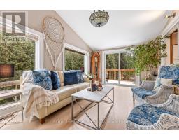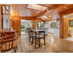 Forget Muskoka! Live the cottage lifestyle full-time in Caledon's hidden gem of Cressview Lakes. Lakeside views, kayaking & fishing just outside your doorstep! Only 1 hour from Toronto, 3 mins to all of Orangeville Amenities. Step inside this very private detached 3 bedroom home/cottage and be greeted in the winter/fall months with the warmth of a main floor wood burning stove, this stove can provide enough heat to supplement the main heat source. The main floor also features a large primary bedroom, sitting room, office and rec room. Architecturally designed to have the main living spaces amongst the trees, upstairs you will find a gorgeous sunroom overlooking the canopy of trees with a walk out to both front and backyard decks overlooking spectacular views. The kitchen "in the canopy" features a centre island and dining area. The upper level is complete with two further bedrooms. This home truly feels like a cottage. Enjoy the summer months on your private dock with only one other home on the lake and one seasonal neighbour on the private road. Fish for wide-mouth bass steps from your front door! Swim, boat or kayak through the "finger lakes", skate, cross country ski, or ice fish in the winter. This home is central to hiking and biking trails, cross country ski clubs and downhill skiing. A perfect retreat for a full time residence or a cottage escape from the city. Motorized boats & short-term rentals are not permitted. Not a co-op, land lease or a condo, NON CONVENTIONAL FINANCING AS 1/16 ownership in Not for Profit corporation of Cressview Lakes. Buyer will have a share in the corporation along with the other homeowners on Cressview Lakes. You own the home and have exclusive use of private lot #30. Cressview Fee Association is $500 annually. *200 feet of waterfront based on survey. Frontage is irregular shaped (id:61594)