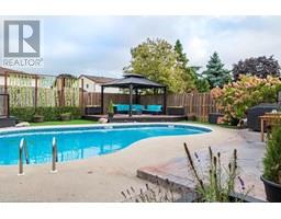 Welcome to this completely updated 3+1 Bedroom 3.5 Bathroom detached family home located in desirable Stoney Creek appointed next to Hunter Estates Park! The main floor features a formal sitting room, powder room and open concept kitchen to family room. The eat-in kitchen is bright and airy with white cabinetry, complimented by white quartz counters and island, contrasted by its stainless-steel appliances. An abundance of natural light is filtered through California shutter and sky lights. The family room feature a beautiful fireplace, as well as floor to ceiling windows with a vaulted ceiling and sliding doors with a walkout to the backyard oasis. Upstairs includes 3 spacious bedrooms and 2 full bathrooms. The Primary features a 3pc spa-like ensuite with large walk-in shower. The main shared 5PC bathroom has been updated to conveniently include double vanity with chic backsplash. The basement is set up with the potential for the perfect in-law suite with an additional 4th bedroom, another full bathroom, large recreation room, game room and laundry. the backyard is an entertainer's dream with multiple seating areas and gardens surrounding the in-ground pool. The double car garage includes inside entry as well as electric vehicle charger. This turn-key home is move-in ready - dont miss out! (id:61594)