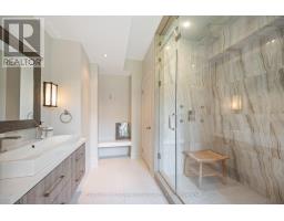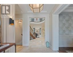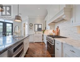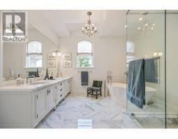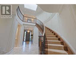 This French County 5 Bedroom 7 washroom custom-built gem is nestled on a private cul-de-sac in Angus Glen West Village, Markham's most prestigious master planned golf community. Built with superior craftsmanship, this home offers almost 7000sf of finished luxury living including an entertainers dream walk-out basement, and 8 car parking capacity. It sits on an expansive 12,000+ sf pie shaped lot (70ft lot frontage series) with a privately treed back yard, swimming pool, pergola and natural stone patio. You are greeted by a grand 10 ft ceilings, towering 30ft centre hall filled with natural light, spacious principal rooms, 8ft doors, 8ft high transom windows and luxury trim and millwork, elegantly dressed by the home owner, a sought after Angus Glen interior designer, with high end designer lighting, imported English plumbing fixtures, designer wallpaper, silk window treatments, and custom millwork. Although perfect for entertaining on a grand scale, each room offers comfort and intimacy. The hearth of the home features a gorgeous English style refined Bloomsbury custom kitchen with walk-in pantry, servery, Viking Stove, Miele fridge and freezer, Perrin and Rowe plumbing fixtures. Garden doors connect the kitchen with a spacious deck for outdoor dining and lounging. Upstairs, are four generous bedrooms, each with its private or semi-ensuite bathroom with a fifth guest bedroom on the main floor. A side door mudroom is perfect for private family use. Two staircases lead down to the walk-out 2500sf in-floor heated lower level, fully equipped for family and guest entertainment, with 11ft wet bar with bar fridge & dishwasher, wine cellar, home theatre, gym, access to pool, bathroom with steam shower, and nanny suite. For fine foods, cafe and gourmet prepared meals the prized Village Grocer is minutes away. Top performing high school, Pierre Elliot Trudeau serves this neighbourhood. A home just for you in one of Markham's most in demand neighbourhoods. (id:61594)