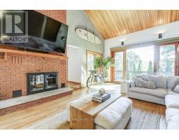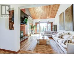 Welcome to this stunning, fully renovated home in the desirable community of Fonthill. With over 4,100 sqft of finished living space, this immaculate residence seamlessly combines luxury& modern design, creating a perfect sanctuary for those seeking elegance & comfort. The heart of the home is the professionally designed kitchen featuring quartz countertops with a striking waterfall island, custom cabinetry, & high-end Fischer & Paykel appliances-all arranged for the discerning chef. Adjacent to the kitchen, you'll find a spacious laundry suite w/a 2pce powder room, Brazilian slate floors & convenient access to the 2 car garage. The living areas exude warmth &sophistication, highlighted by a double-sided wood-burning fireplace that creates a cozy ambiance. Vaulted ceilings & exposed brick accents in the living room add rustic charm, complemented by Venetian plaster walls & rich oak floors that run throughout the home. A sunroom with skylights opens to the dining area & seamlessly connects to a large deck overlooking the backyard oasis. Upstairs, discover a charming music loft overlooking the LR below. The primary suite is a luxurious retreat w/vaulted ceilings, a private sitting loft & a spa-inspired bathroom with a double vanity, under-cabinet lighting, an egg-shaped soaking tub,& a separate shower. A spacious custom W/I closet completes this private sanctuary. The basement features a zen garden leading to a wellness area with a fully equipped gym & a 5-piece spa bathroom, including a cedar sauna for tranquil escapes. Adjacent, you'll find the man cave bar area with two TVs, a live-edge red oak bar, beer tap & W/O access to the backyard. The rec room boasts a custom built wall unit, built-in TV, & a large electric fireplace, perfect for relaxation & entertaining. The backyard is a private retreat, surrounded by professionally landscaped gardens, a heated pool, hot tub, & pool house. Multi-level decks & a stone patio create the ideal setting for outdoor gatherings. (id:61594)
