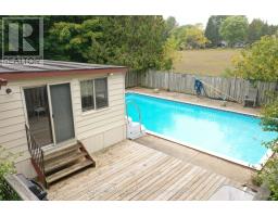 A rare gem! Tucked away on a peaceful court in Poplar Hill, just minutes northwest of London and a short walk from the community park and Coldstream Conservation Area. This charming brick bungalow sits on a mature, private lot on a tranquil street. Features include a 1.5-car attached garage, a detached storage shed, and an inground swimming pool. Inside, you'll find 3 bedrooms, 2 bathrooms, a spacious living room with hardwood floors, and a dining area that is open to the kitchen. The finished lower level boasts a cozy family room with a gas fireplace. Enjoy the beautiful 3-season sunroom overlooking the pool. Several updated windows and a new gas furnace in 2024. *Note: The heating system is forced air gas and the baseboard heaters can be removed. Prime location! (id:61594)