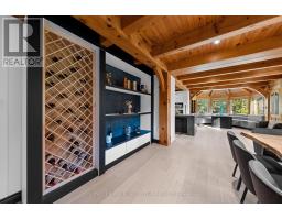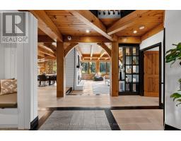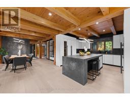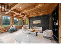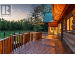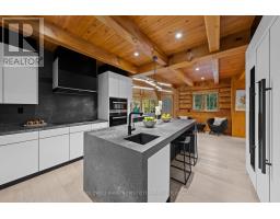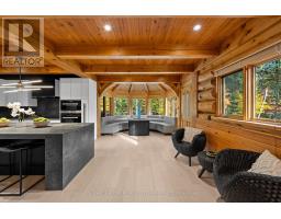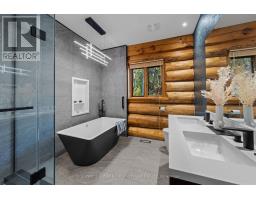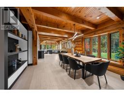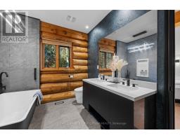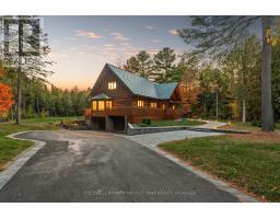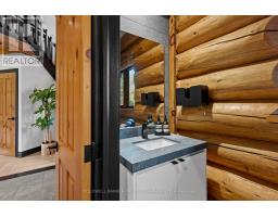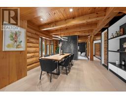 This residence is a private retreat with timeless charm and Modern Elegance. Nestled on a serene 2.3-acre lot surrounded by mature trees, this exquisite residence seamlessly blends the warm character of a traditional log home with a fully modernized, luxurious interior. Offering privacy, tranquility, and breathtaking natural views, the location provides the perfect balance peaceful country-style living just a short drive from Ottawas amenities, schools, shops, and recreation. Step inside to a sun-filled, sunken living room featuring a cozy wood-burning fireplace with an elegant stone surround, oversized windows, and patio doors that invite the outdoors in. The chef-inspired country kitchen is a true showpiece, boasting custom millwork, quartz countertops, a spacious island with built-in cooktop, walk-in pantry, and built-in appliances. A large eat-in area with bay window and banquette seating offers the perfect place to enjoy morning coffee while taking in tranquil views, while the expansive formal dining room is ideal for hosting family gatherings and elegant dinner parties.The main floor suite offers a private retreat with its own walk-in closet, 4-piece ensuite, and direct access to a private sundeck overlooking the backyard. A convenient main floor laundry everyday living .Upstairs, a versatile loft with gas fireplace provides the ideal space to relax and take in the tranquil, wooded surroundings. On this floor, you'll find the primary bedroom wing of the home with additional custom millwork and luxurious breath-taking, vacation-like spa inspired bathroom area. Another additional bedroom with ensuite bathroom as well! The exterior is equally impressive with a metal roof, oversized double garage, flagstone pathways, mature gardens, and storage shed all framed by a beautifully treed and landscaped setting. This property is truly a hidden gem, offering a rare blend of traditional log home charm and refined modern luxury. ** This is a linked property.** (id:61594)
