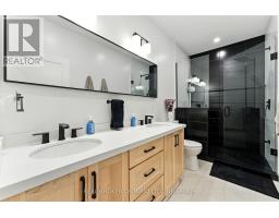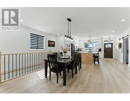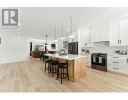 Welcome to this beautifully designed bungalow featuring 2+2 bedrooms and 3 full bathrooms, perfectly blending modern elegance with functional living. The exterior showcases timeless curb appeal with white Hardie Board siding paired with classic stone accents. Step inside to an open-concept kitchen and dinette area, where floor-to-ceiling white cabinetry is complemented by a light wood island - the perfect space for cooking and entertaining. The adjoining living room is warm and inviting, centered around a striking shiplap fireplace and framed by sliding patio doors that lead to your private outdoor retreat. Just off the living area, the spacious primary suite offers a serene escape, complete with a spa-like 4-piece ensuite featuring a glass-enclosed shower and a light wood double vanity. A second bedroom and another full 4-piece bathroom complete the main level, along with a convenient laundry/mudroom tucked behind a charming sliding barn door. Downstairs, the fully finished basement boasts a generous recreation room, two large bedrooms, and yet another full 4-piece bathroom - ideal for guests, family, or a home office setup. The backyard is designed for year-round enjoyment, featuring a beautiful patio and a covered hot tub area perfect for relaxing or entertaining. (id:61594)