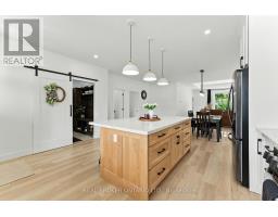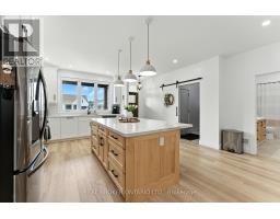 Welcome to this beautifully designed bungalow featuring 2+2 bedrooms and 3 full bathrooms, perfectly blending modern elegance with functional living. The exterior showcases timeless curb appeal with white Hardie Board siding paired with classic stone accents. Step inside to an open-concept kitchen and dinette area, where floor-to-ceiling white cabinetry is complemented by a light wood island - the perfect space for cooking and entertaining. The adjoining living room is warm and inviting, centered around a striking shiplap fireplace and framed by sliding patio doors that lead to your private outdoor retreat. Just off the living area, the spacious primary suite offers a serene escape, complete with a spa-like 4-piece ensuite featuring a glass-enclosed shower and a light wood double vanity. A second bedroom and another full 4-piece bathroom complete the main level, along with a convenient laundry/mudroom tucked behind a charming sliding barn door. Downstairs, the fully finished basement boasts a generous recreation room, two large bedrooms, and yet another full 4-piece bathroom - ideal for guests, family, or a home office setup. The backyard is designed for year-round enjoyment, featuring a beautiful patio and a covered hot tub area perfect for relaxing or entertaining. (id:61594)