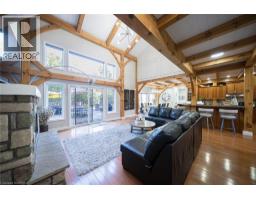 Welcome to your private country retreat at 9 Michael’s Lane. Set on a beautifully landscaped 1.39-acre lot, this exceptional home offers over 3,300 sq. ft. of finished living space, blending modern updates with the serenity of a true outdoor oasis. Thoughtfully renovated from 2022–2025, the home features a bright and functional main floor with a spacious kitchen, dining area, and stunning great room highlighted by soaring ceilings and wood beams. The main level includes a spacious primary bedroom with a 5-piece ensuite, plus a second bedroom and a convenient 2-piece bathroom—ideal for guests or a home office. A large mudroom and main-floor laundry add everyday practicality. Upstairs, you’ll find three additional bedrooms and a full 4-piece bathroom, offering plenty of space for a growing family or visiting guests. The finished lower level adds even more versatility with a gym, sitting room, and den—perfect for work-from-home space, hobbies, or cozy movie nights. Step outside and experience your own private backyard oasis, complete with a heated on-ground pool, new liner and salt cell, extensive landscaping, mature trees, and plenty of space to relax or entertain in total privacy. Recent exterior upgrades include a metal roof, new pool heater, exterior lighting, and enhanced curb appeal with newly planted trees and gardens. With extensive updates throughout — including bathrooms, flooring, lighting, windows and doors, custom closets, and high-end finishes — this move-in-ready property offers the perfect blend of comfort, style, and outdoor living. A rare opportunity to enjoy country privacy without sacrificing space, quality, or modern convenience. (id:61594)