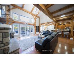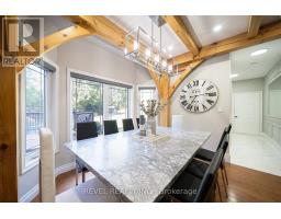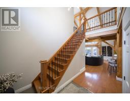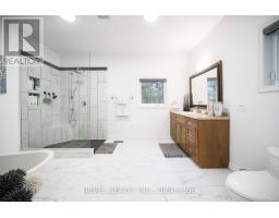 Welcome to your private country retreat at 9 Michael's Lane. Set on a beautifully landscaped 1.39-acre lot, this exceptional home offers over 3,300 sq. ft. of finished living space, blending modern updates with the serenity of a true outdoor oasis. Thoughtfully renovated from 2022-2025, the home features a bright and functional main floor with a spacious kitchen, dining area, and stunning great room highlighted by soaring ceilings and wood beams. The main level includes a spacious primary bedroom with a 5-piece ensuite, plus a second bedroom and a convenient 2-piece bathroom-ideal for guests or a home office. A large mudroom and main-floor laundry add everyday practicality.Upstairs, you'll find three additional bedrooms and a full 4-piece bathroom, offering plenty of space for a growing family or visiting guests. The finished lower level add seven more versatility with a gym, sitting room, and den-perfect for work-from-home space, hobbies, or cozy movie nights.Step outside and experience your own private backyard oasis, complete with a heated on-ground pool, new liner and salt cell, extensive landscaping, mature trees, and plenty of space to relax or entertain in total privacy. Recent exterior upgrades include a metal roof, new pool heater, exterior lighting, and enhanced curb appeal with newly planted trees and gardens.With extensive updates throughout - including bathrooms, flooring, lighting, windows and doors, custom closets, and high-end finishes - this move-in-ready property offers the perfect blend of comfort, style, and outdoor living. A rare opportunity to enjoy country privacy without sacrificing space, quality, or modern convenience. (id:61594)